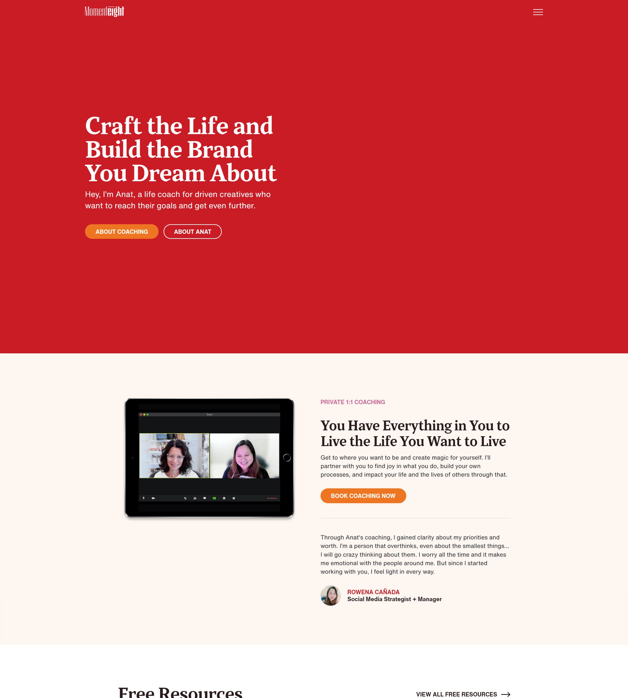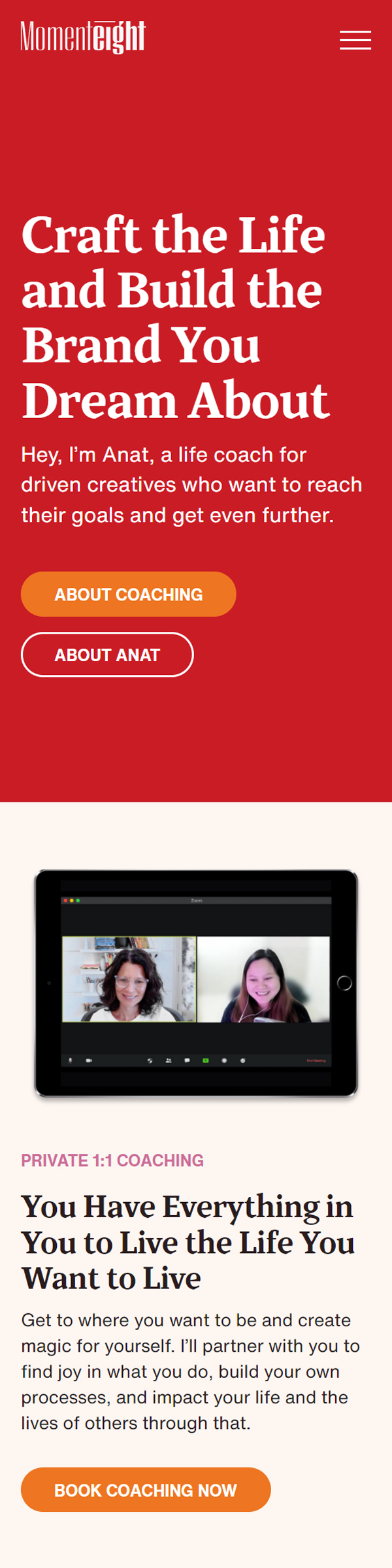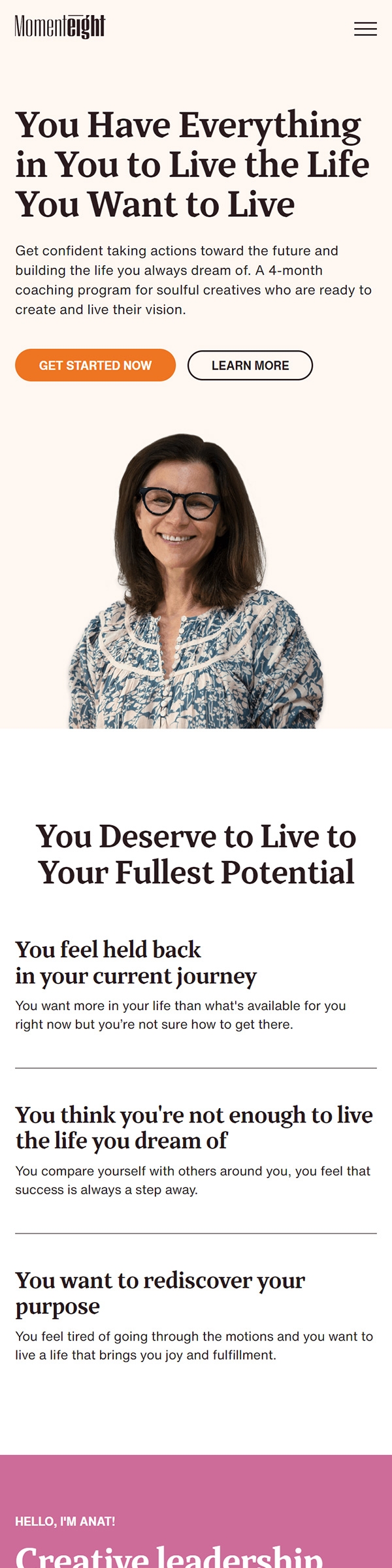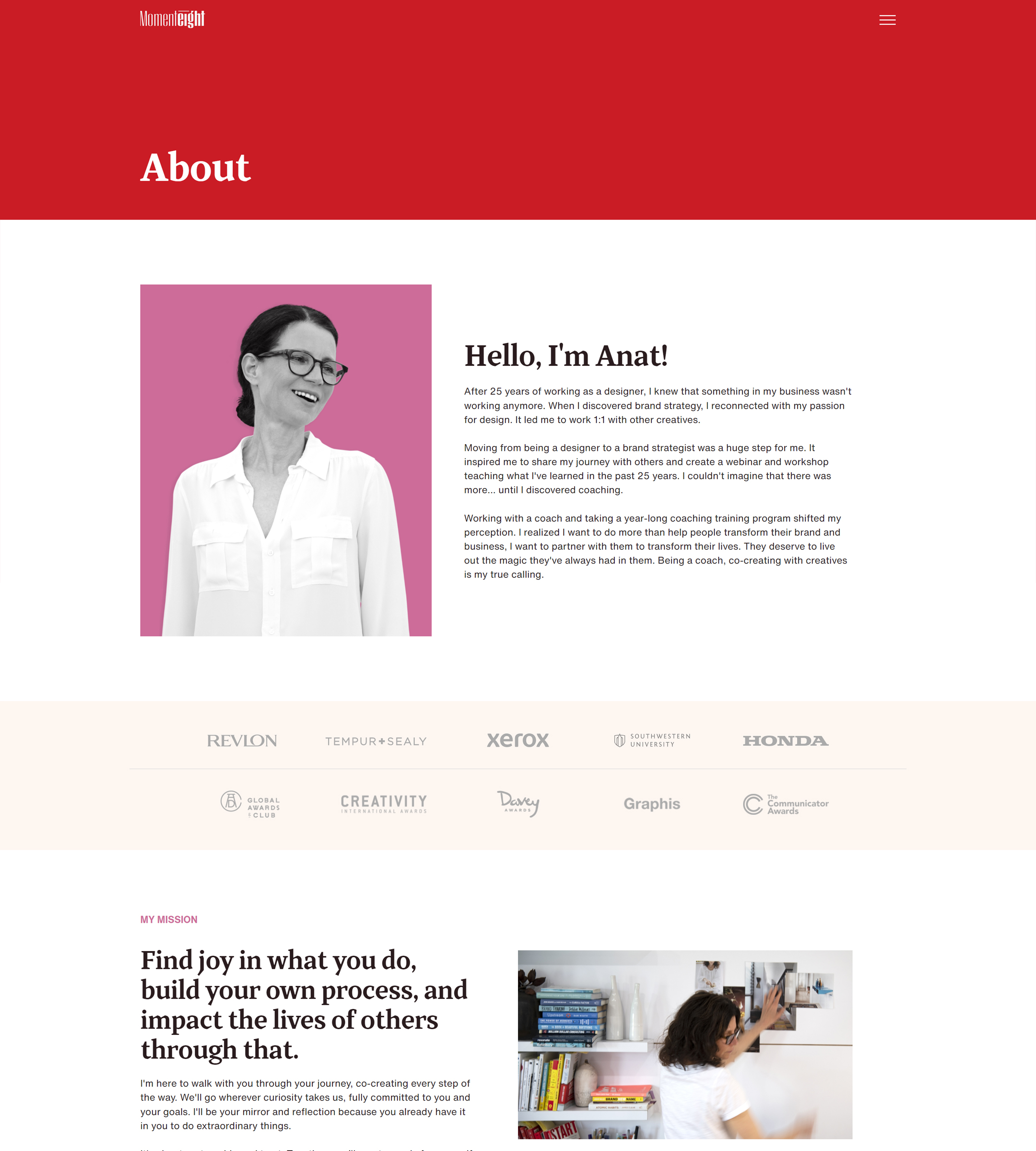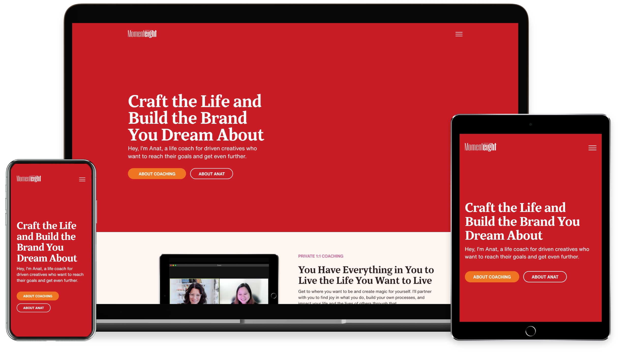 Webflow is the platform we've chosen for Anat's website. It's easy to create and update websites, lightning-fast hosting, and comprehensive built-in security. If you want to check out the live website of MomentEight here is the link: https://www.momenteight.com/