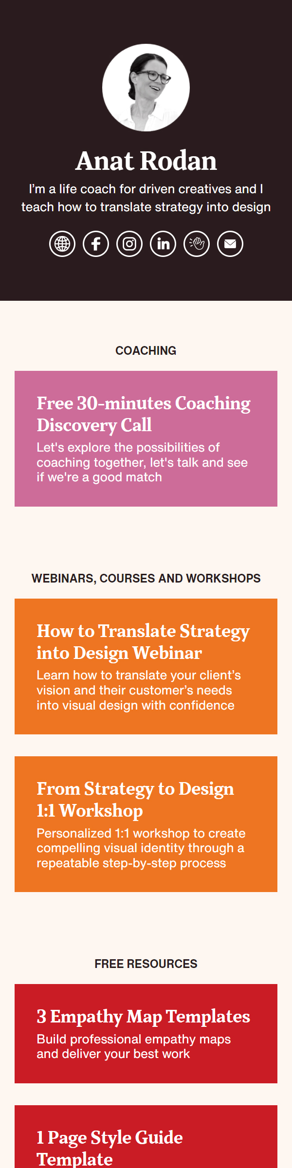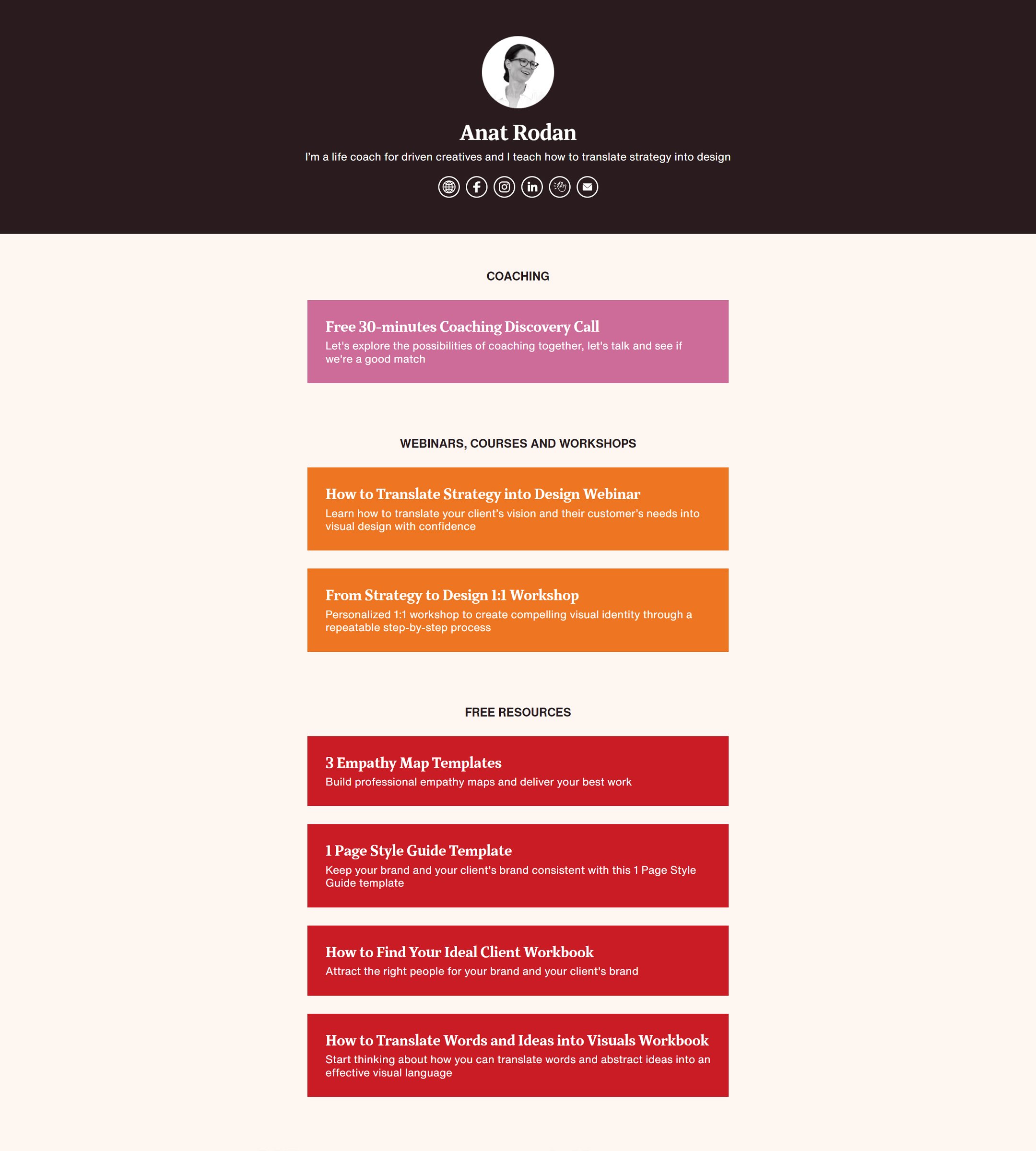 After doing a strategy call with Anat, we both came up with the solution that her website needs a complete redesign, focusing on her online education business instead of her brand strategy and design services.